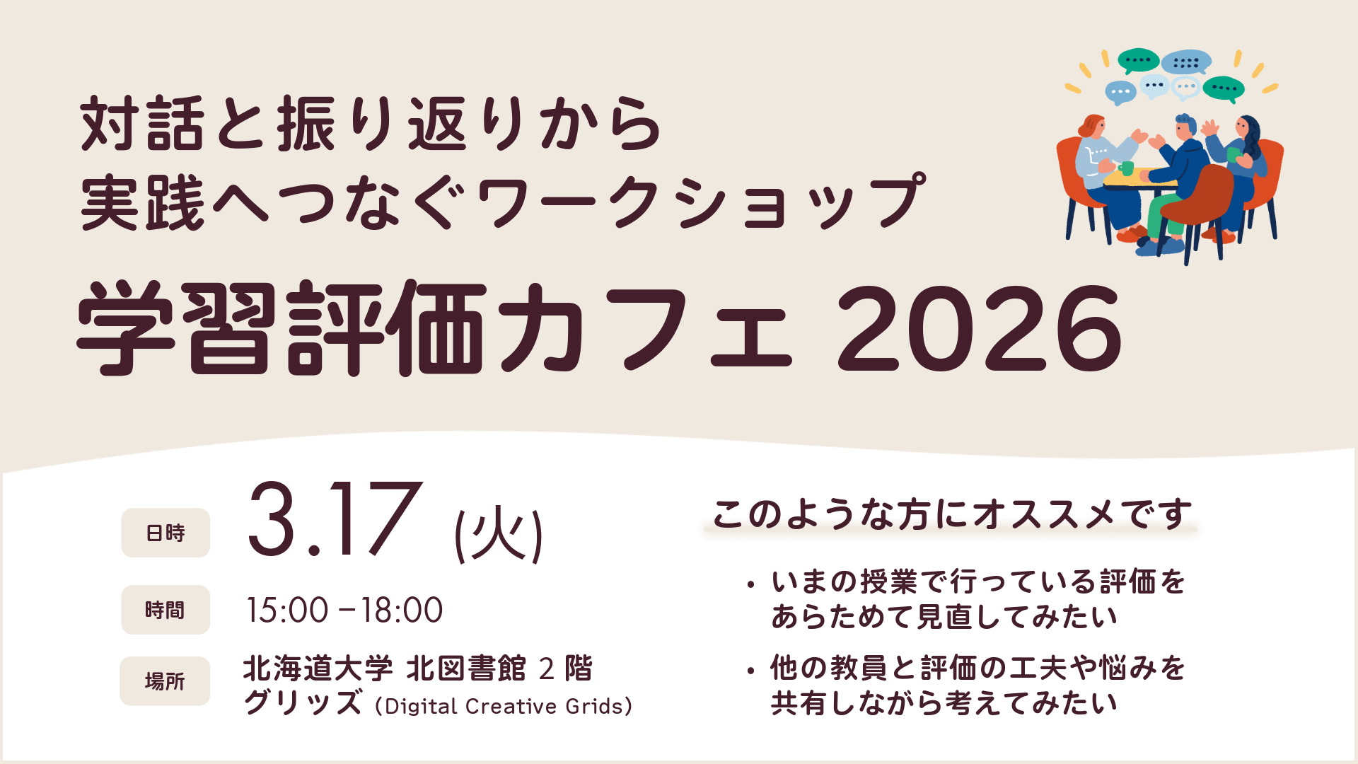 【3/17(火)開催】「学習評価カフェ2026― 対話と振り返りから実践へつなぐワークショップ ―」のご案内